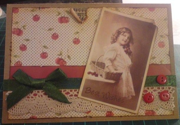 Occasions Clear Stamps in dark brown chalk ink. I have no idea who the patterned paper is by as this came out of my scraps file but there are some nice ones on the link below by Shabby Princess. Also used Kraft, Cream and Brown cardstock.